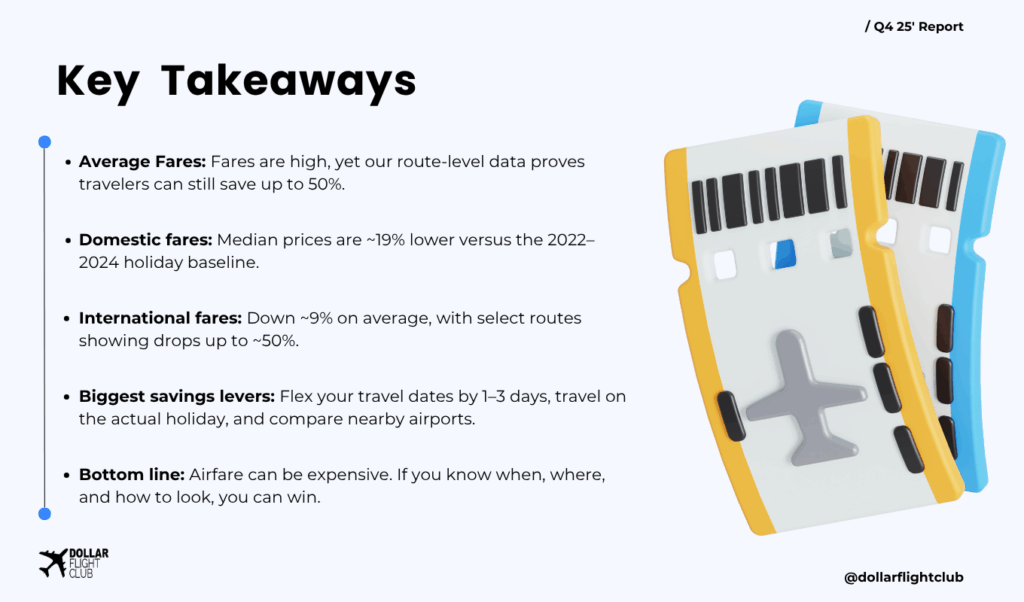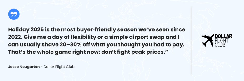 Holiday airfare hasn’t looked this forgiving since 2022, and the gap between “peak” and “almost-peak” is wide. Our job at Dollar Flight Club is to help you live in that gap, where a one‑day shift or an airport swap turns a decent fare into a great experience for you as a traveler.