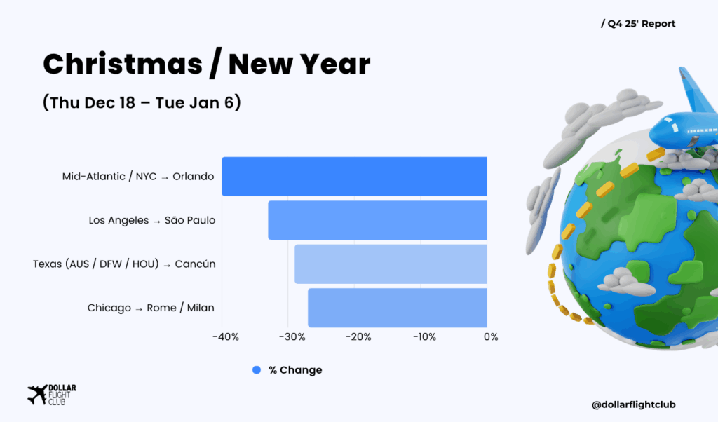 - Why it’s down: Competitive long-haul market and soft pricing on Christmas-week departures.